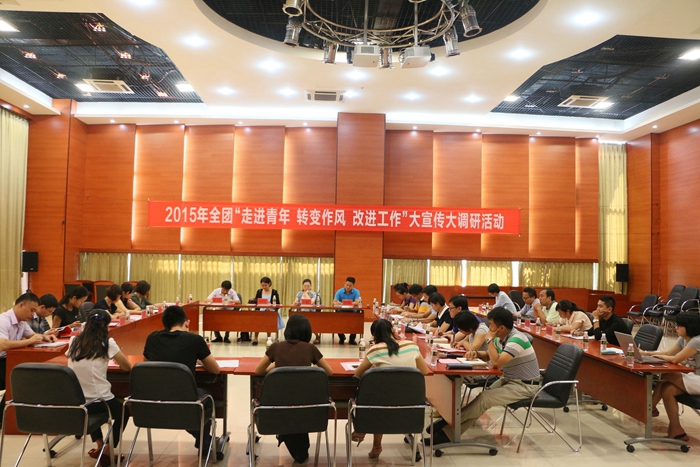 9月23日,团中央调研组在PA视讯集团网站召开“走进青年、转变作风、改进工作”专题调研座谈会。共青团中央国际联络部副部长李青、国际联络部调研员赵凌、国际联络部干部郑悦,团省委联络部部长许梅、学校部副部长蒋振威,团市委青工部负责人杨斌出席座谈会。