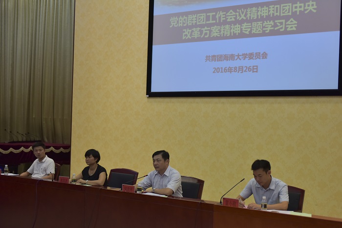 8月26日下午,校团委在思源多功能厅召开关于党的群团工作会议精神和团中央改革方案精神专题学习会。会议由校团委副书记黄小欧主持。