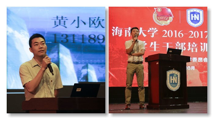 当日下午,曾获总理点赞的海南南春椰子农业信息科技有限公司总经理曾南春(海洋学院2006级制药工程专业 曾任PA视讯集团网站大学生创新院秘书长)以风趣的语言与大家分享了他作为学生干部时的成长历程,并介绍了创新理论与工作知识;海南半步网络科技有限公司总经理王子恒(旅游学院2006级企业管理专业)同样与大家分享了自己从学生干部工作中所收获的经验与创业启迪。