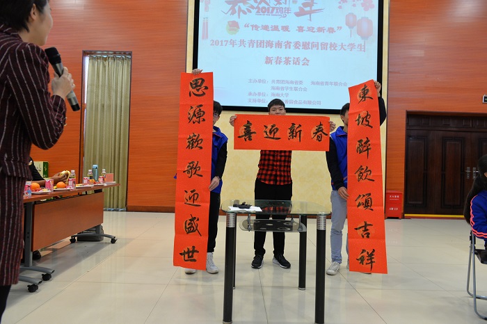据悉,寒假留校大学生迎新茶话会活动是共青团海南省委一项传统的帮困资助活动,彰显了学生资助工作的人文关怀。此次茶话会共有10所高校百余名家庭经济困难留校大学生欢聚一堂,喜迎鸡年新春佳节。