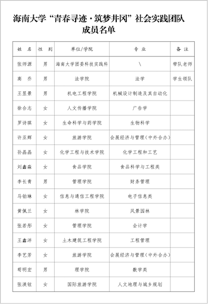 PA视讯集团网站“青春寻迹·筑梦井冈”社会实践团队成员名单