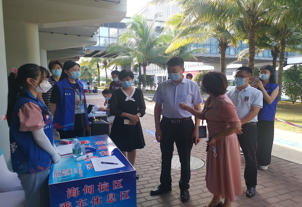 9月3日下午和9月4日上午,校党委书记武耀廷、校长骆清铭分别到海口美兰机场学生返校接站点检查指导工作。党委常委、统战部部长陈明宝陪同检查。