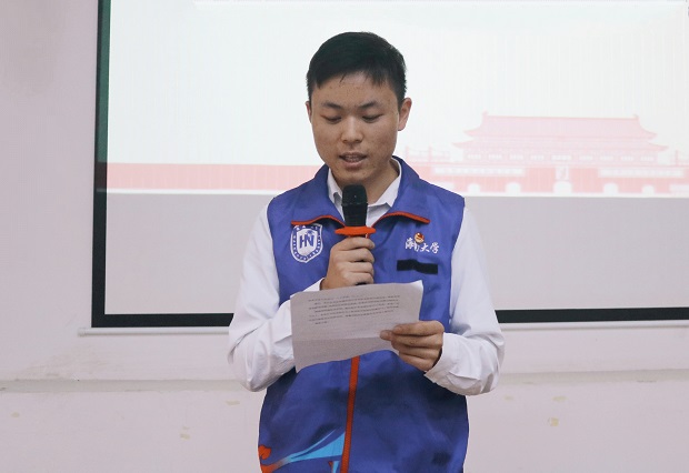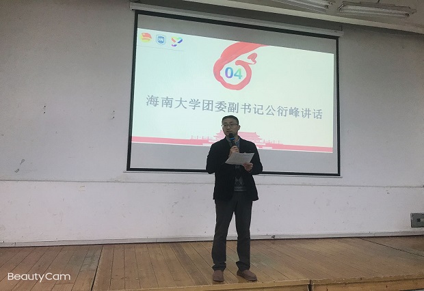 校团委学生社团管理科副科长刘申宣读《关于成立PA视讯集团网站(儋州校区)青年志愿者协会的通知》。儋州校区青年志愿者协会负责人岳兴胜作为学生骨干代表发言。