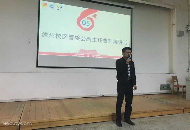 儋州校区管委会副主任曹艺涛在成立大会上讲话。他首先代表儋州校区管理委员会对学校在儋州校区成立青年志愿者协会表示热烈的欢迎!他强调,青年志愿者协会的成立将积极发挥志愿服务育人功能、加强学生人才培养、繁荣校区文化建设具有不可替代的作用。他指出,此次成立儋州校区青年志愿者协会,将大力提升儋州校区在志愿服务工作水平,让志愿精神更好的在儋州校区传递。儋州校区管委会将大力支持儋州校区青年志愿者协会发展。