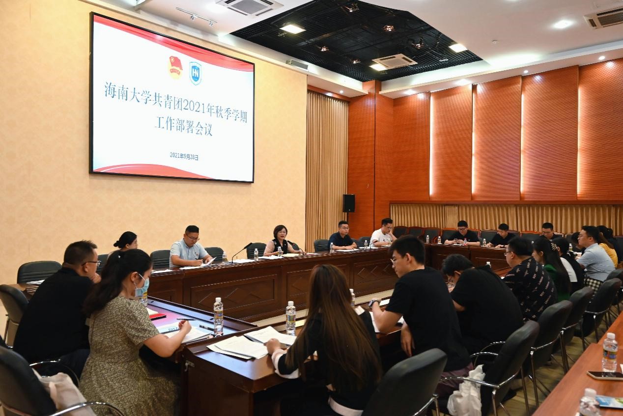 校团委各科室专职团干分别就“青年大学习”网上主题团课、“学社衔接”、校园交通文明大行动、海南自贸港青年创新创业大赛等工作进行了汇报与具体安排。