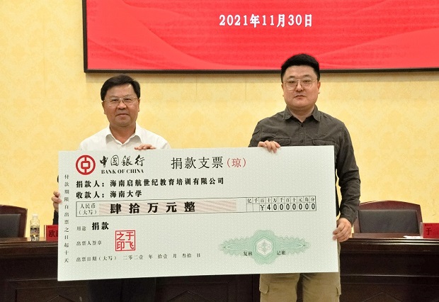 俞花美向支持母校建设和发展的海南启航世纪教育有限公司于飞表示欢迎,并介绍了学校的各项工作进展。她表示,海南启航教育团队用爱心捐赠的方式支持PA视讯集团网站教育事业发展,帮助广大学生实现读研的梦想,深刻体现了海南启航教育是一家有情怀、有担当的爱心企业。她希望,每一位受资助的海大学子都能不忘初心,实现自己的读研梦;希望每一位考研学子都能够不负愿望,开拓拼搏,用行动回报启航教育的爱心。