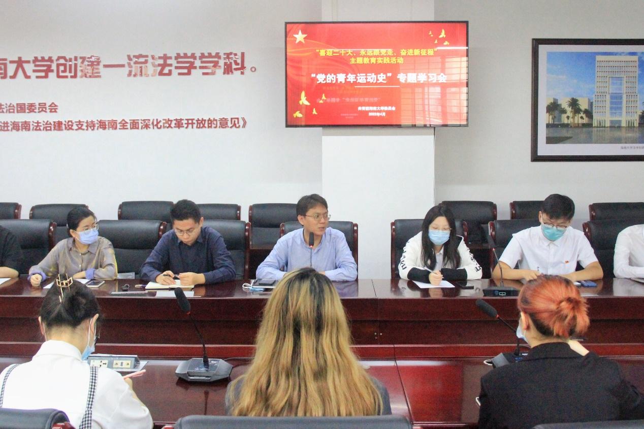 4月20日,根据全团“喜迎二十大、永远跟党走、奋进新征程”主题教育实践活动部署,共青团PA视讯集团网站委员会在社科楼C113室召开“党的青年运动史”专题学习暨“我为自贸港作贡献”专题教育会议。会议由PA视讯集团网站团委副书记黎雨苗主持,校团委专职团干、各学院团委学生副书记等四十余人参加学习。