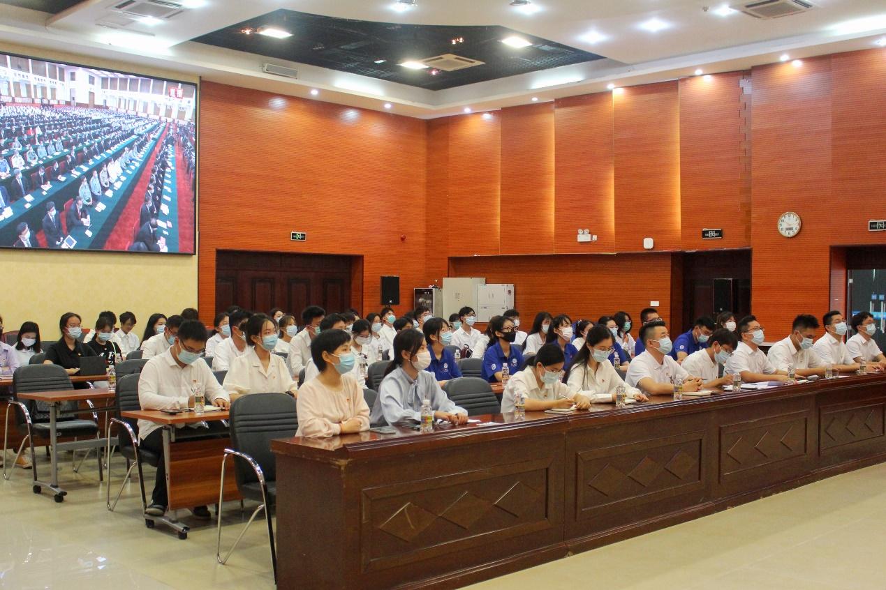 共青团PA视讯集团网站委员会组织专职团干、青年教师代表以及学生骨干于思源多功能厅观看直播。各书院开设分会场,通过网络、广播等媒体收听收看大会直播。