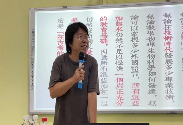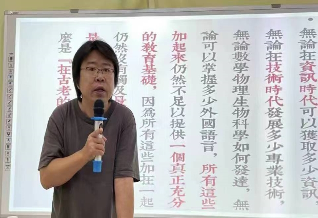 贾冬阳老师引用了多年前国学大师钱穆先生在台湾讲学时的话“我在给一群外国人上课”开题,借此向同学们抛出一道思考题——“何谓中国?”随后,他从《劝学》出发,围绕“中国的政制传统面临前所未有的挑战”和“中国正面临着从未有过的国际政治格局”两大现实问题,以“天文”与“人文”两方向为抓手,高屋建瓴地为同学们阐述了“中国为何是中国”这一问题,通过政治与人文的交融激励同学们重新审视认识自我,以“重塑文明自信”为己任,回归本真。“没有深切的‘政治自觉’与‘文明自觉’,中国就不可能真正面对全球化的挑战,不可能在西方技术文明的冲击下切实回复中华文明至深之根基并扎根其上,建立起承担中国百年漂泊的现代命运的政制形式与文教制度。”