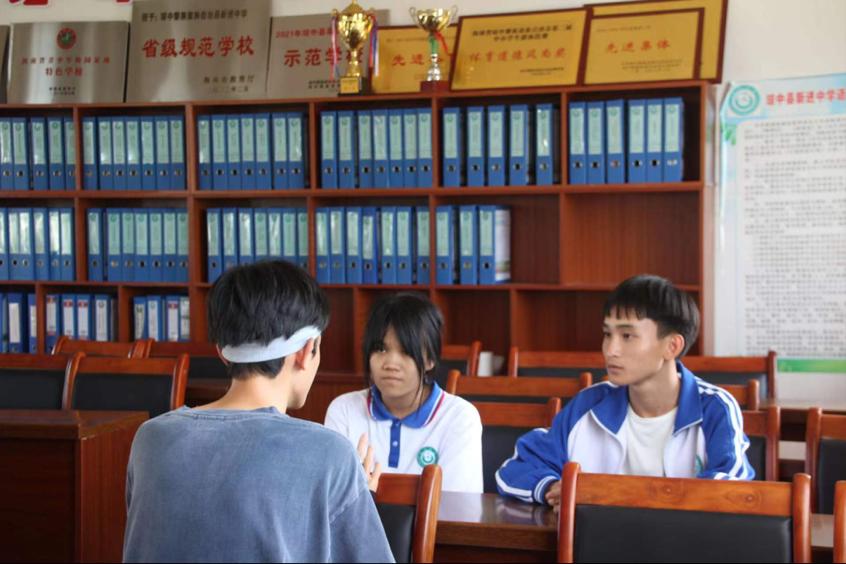 随后,调研小组与琼中县新近中学地理与政治任课老师和该校各年级学生进行交流,围绕老师教学形式创新与学生学习状态的话题深入探讨。调研小组了解到许多教师和学生切身关注的问题,进一步明确了后续工作的开展方向。