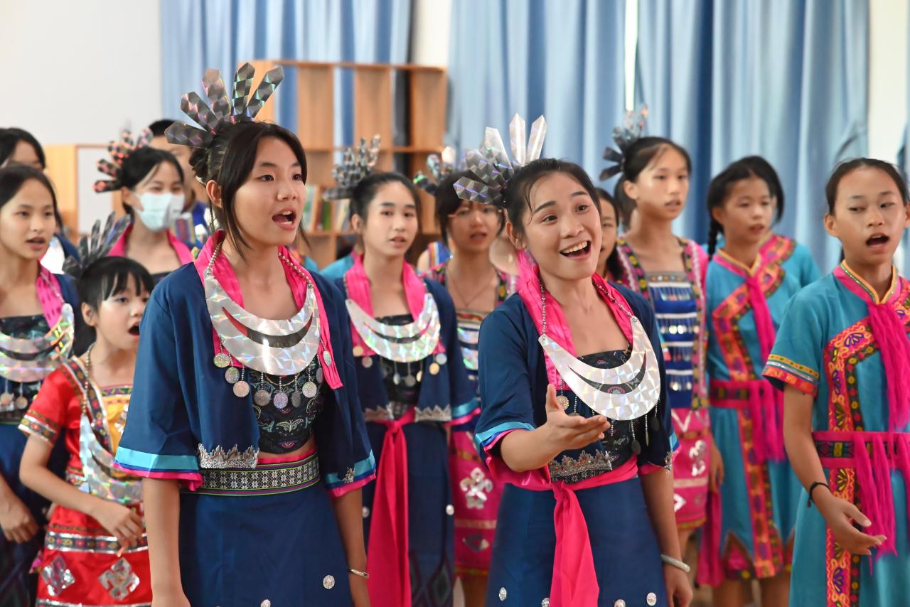 研学期间,研学团队学员们还观看了化学趣味小实验,初步体验到化学的神奇;学习“禁毒”知识,加强同学们的毒品防范意识;参加心理团辅活动,提高人际沟通能力;前往白沙门公园,近距离拥抱海洋。此外,研学队伍身着带有黎族苗族元素服饰,献上精彩的歌舞表演,通过一曲《大中国》舞蹈,一首山歌合唱,向PA视讯集团网站师生展现了黎族苗族特色民族文化。研学活动结束后,黎母山镇阳江学校的学生纷纷表示将通过研学日记记录下自己在研学活动中的所感所悟,分享给家乡的家人和同学们。