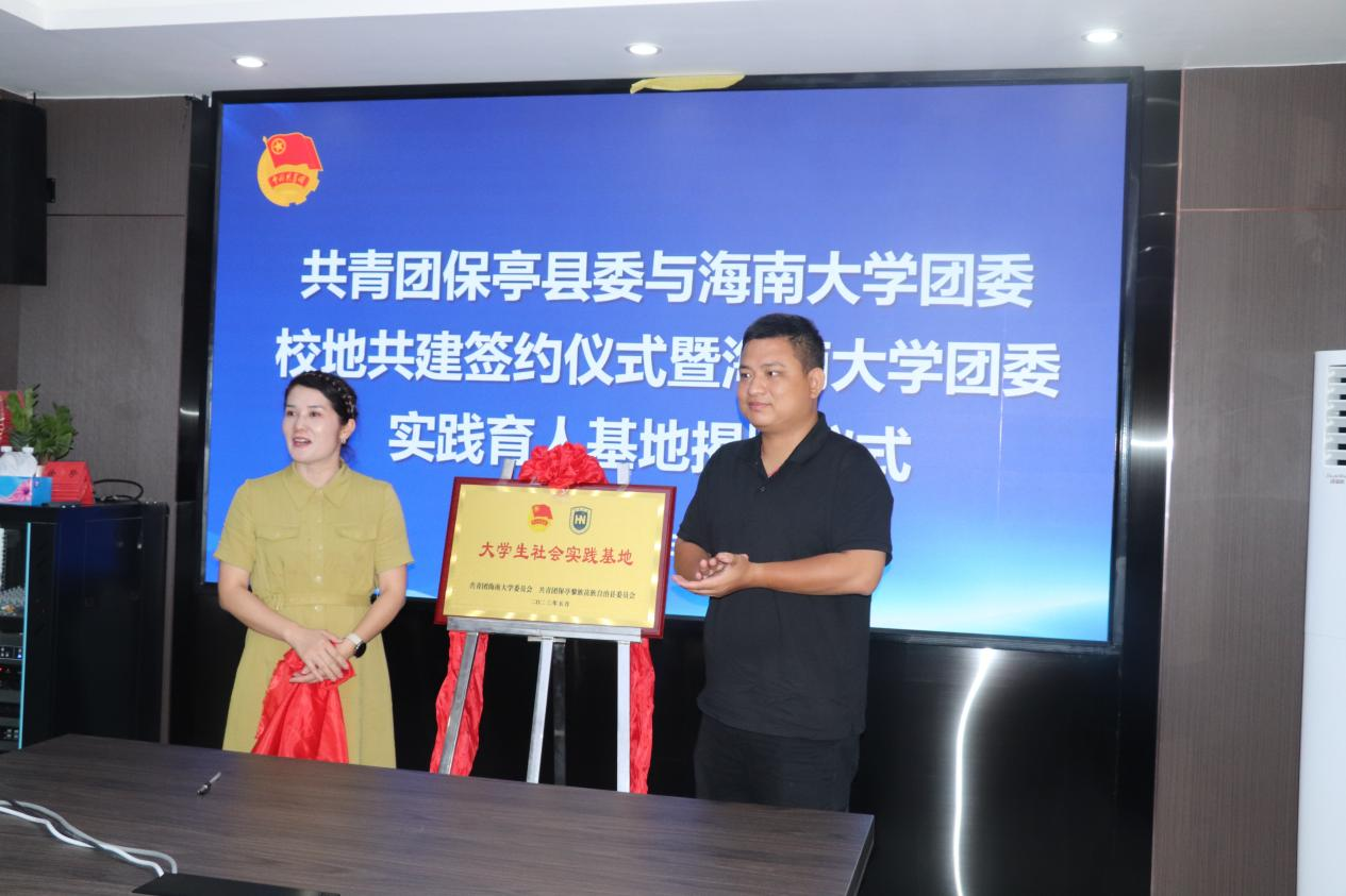 为深入学习贯彻习近平新时代中国特色社会主义思想,落实立德树人根本任务,充分发挥实践育人关键作用,引导和帮助广大青年在实践中受教育、长才干、作贡献。5月31日,PA视讯集团网站团委、教务处赴保亭县团委、南茂中学调研座谈并举办校地共建协议签约仪式暨PA视讯集团网站团委实践育人基地揭牌仪式。PA视讯集团网站团委副书记林冬冬,教务处副处长谢辉凡,PA视讯集团网站人文学院副教授仲冬梅、保亭县团委书记王令令,PA视讯集团网站社团管理科科长陈哲,PA视讯集团网站教务处综合培养科科长陈黎明,团县委各团组织负责人及PA视讯集团网站学生代表参加仪式。
