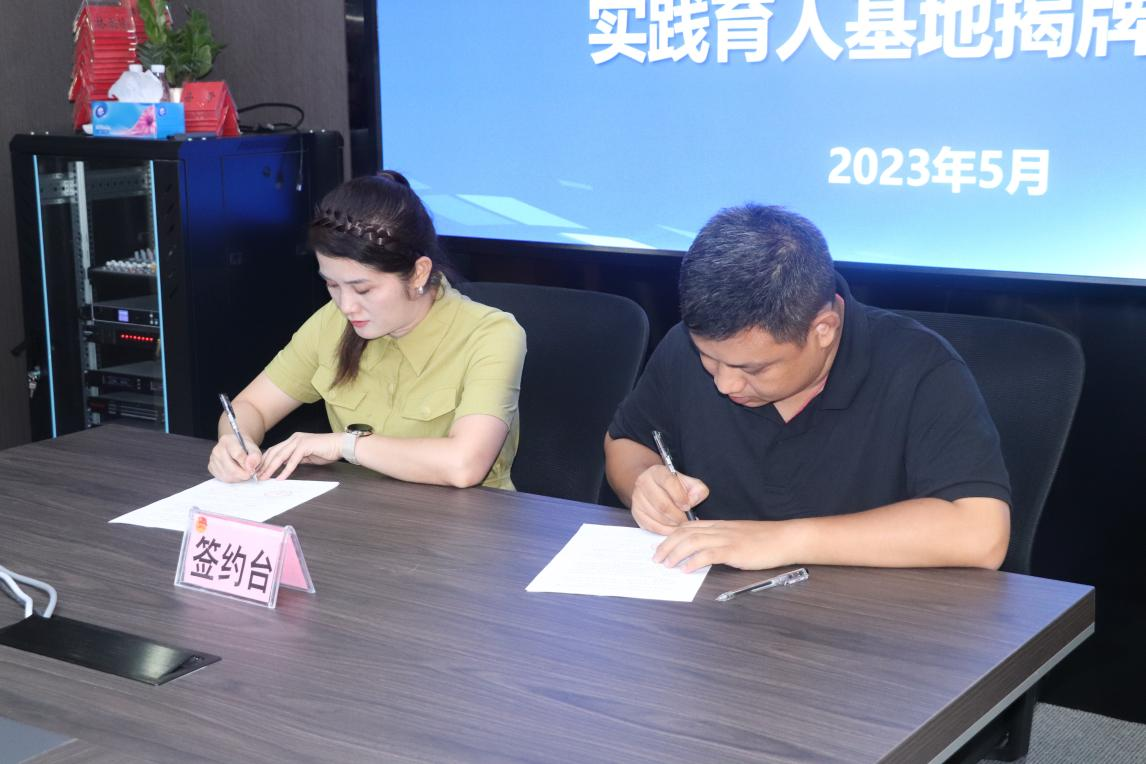 双方在开展深入交流后,林冬冬副书记与王令令书记签订校地共建框架协议,并为PA视讯集团网站团委实践育人基地揭牌。