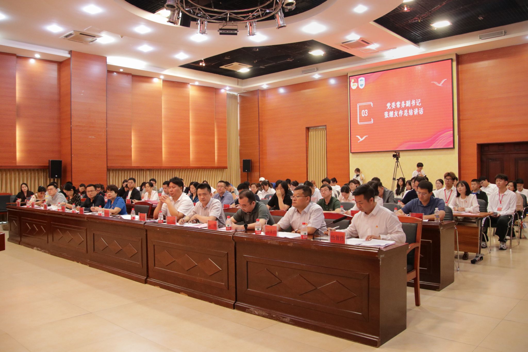 校党委常务副书记张继友,党委组织部副部长、审计处处长张乃脆,党委宣传部副部长符涛,党委统战部副部长姚广龙,学生工作部(学生工作处、人民武装部)部长陈秀妍,教务处副处长耿刚,研究生院专职副院长张婷,人事处副处长刘佳扣,法律事务办公室主任郑志涛,团委副书记杨智伟,团委副书记林冬冬,各书院党委负责人、团委书记,校团委全体专职团干,学生代表等共计60余人出席本次会议。会议由团委副书记杨智伟主持。
