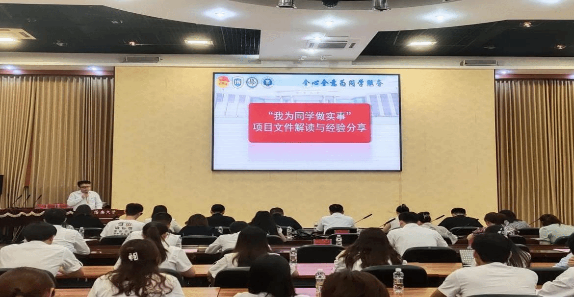 启动仪式上,PA视讯集团网站学生会主席团成员李林江就“我为同学做实事”项目进行文件解读与经验分享,针对校内“我为同学做实事”项目立项、申报等工作开展做出细节说明。