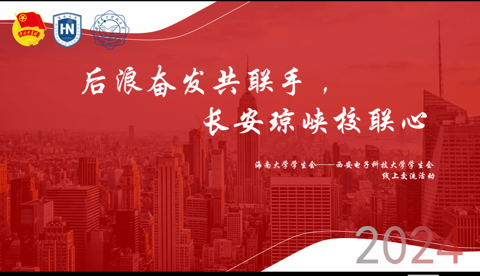 为促进高校间学生会互相学习、合作交流、共同发展,我校学生会于5月12日同西安电子科技大学共同举办了主题为“后浪奋发共联手,长江琼峡校联心”的线上交流会。