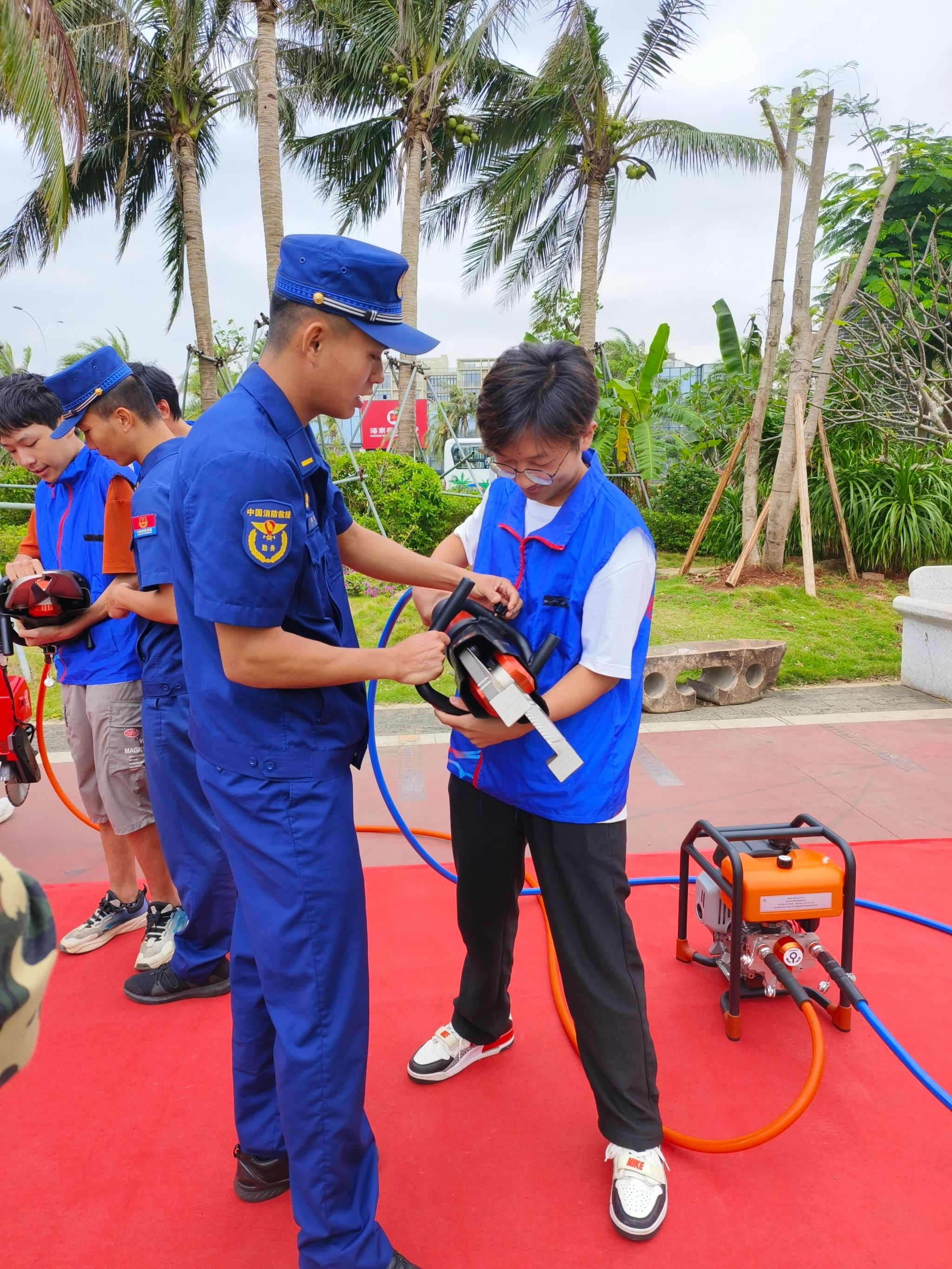 我校还积极组织志愿者们走进海口市美兰区消防救援大队海甸消防救援站,开展消防安全知识培训,并在专业指导下学习消防水带的展开、高空救援等技能,深刻理解了“预防为主,生命至上”的消防理念。同时,志愿者们与美兰区消防救援大队一起走入高山社区,通过多种互动环节,让居民们在轻松愉快的氛围中学习消防科普知识,提升消防安全意识。