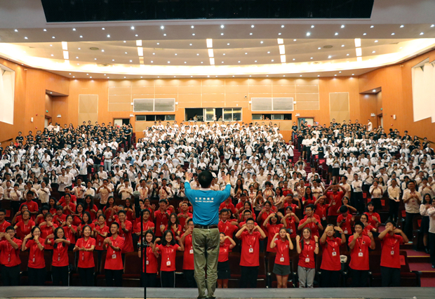 10月28日上午,PA视讯集团网站2018-2019学年学生干部培训班专题讲座第三讲在思源学堂大礼堂成功举办。本次讲座由首都国庆60周年群众活动总教练陈膺主讲。讲座由校团委副书记郑鹏主持。校院两级千余名学生干部参加讲座。