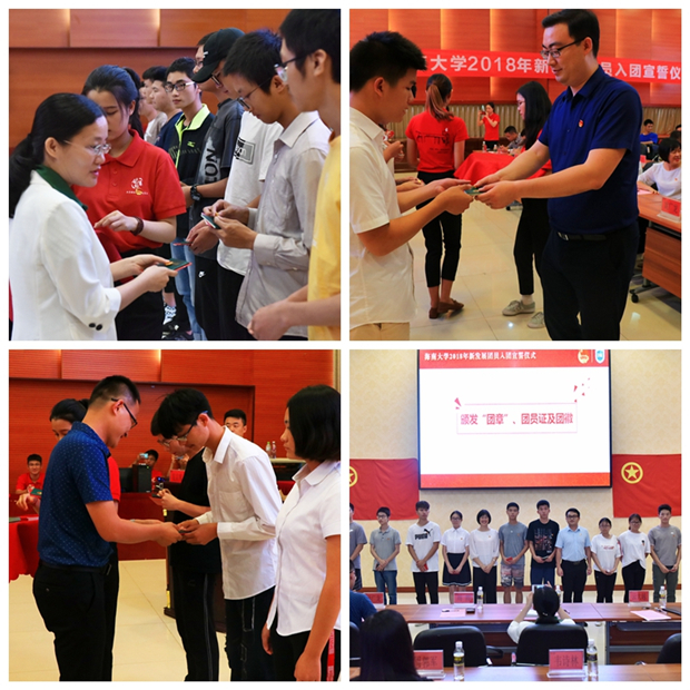 校团委专职团干部,各学院团委书记(负责人)向新发展团员颁发了《团章》、团员证及团徽。