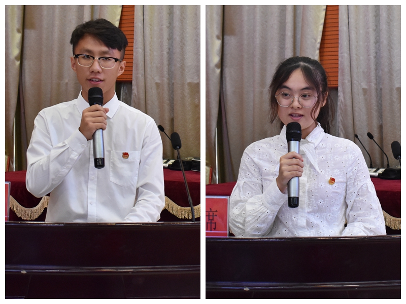 新团员代表董卢璐发言,表示将继承和发扬共青团的优良传统,时刻以团员的标准严格要求自己,努力学习,积极进取,以实际行动践行自己的入团誓言;老团员代表陈宏灿鼓励所有团员在感到无比光荣和自豪的同时,也要牢记自身肩负的使命和责任,要积极履行团员义务,在海南省建省办经济特区的发展浪潮中,做奋斗者谱写青春新华章。