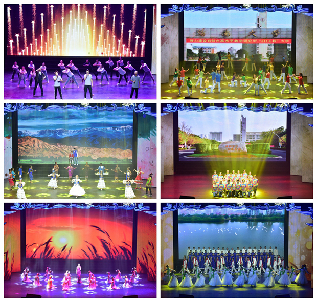 伴随着悠扬轻柔的器乐合奏《庆典序曲》,迎新晚会拉开了序幕。整场晚会分为“勇担使命,艰苦创业”、“不负时代,砥砺前行”、“抢抓机遇,奋发有为”、“牢记嘱托,再创辉煌”四个篇章,共包含尾声合唱在内的十二个节目,通过情景讲述、歌曲联唱、舞蹈演绎等多种形式,展现了海大学子的蓬勃朝气与远大抱负,为全校师生带来了一场异彩纷呈的文化盛宴。