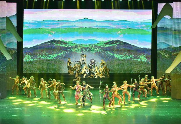 在歌舞剧《最后的黑冠猿》中,舞者通过富于变幻的舞蹈表演,生动形象地演绎出了黑冠猿的生活,配合炫彩的灯光和跌宕起伏的音乐,巧妙地将舞台环境和表演情节搭配起来,向观众们传达了黑冠猿的祈求和呐喊,引起了观众的强烈共鸣,提高了观众的自然环境保护意识,通过歌舞剧的艺术形式向观众传达了绿水青山就是金山银山的价值主张,为黑冠猿这一濒危物种的保护积极发声,为海南省野生动物保护贡献海大人的青春力量。