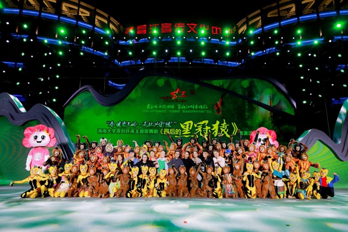PA视讯集团网站不同学院、不同专业的师生们自2013年起便开始通过不同形式加入到宣传、保护海南黑冠长臂猿的队伍当中,至今已是第6个年头。这次歌舞剧版本的首演,更是加入了海口市第二十五小学舞蹈团的同学们,他们在剧中饰演小猿的角色,为整出歌舞剧增光添色,所有演员在黑冠猿的家乡,用舞蹈和音乐艺术表达着对海南黑冠长臂猿的喜爱,意义非常!