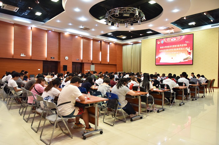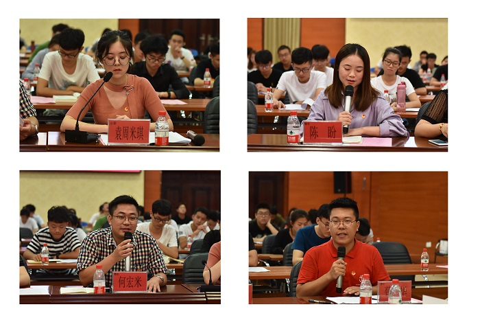 与会人员踊跃发言,现场讨论氛围热烈。专职团干表示要学习好贯彻好落实好习近平总书记关于思想政治工作的重要讲话精神,坚定理想信念,落实立德树人的根本任务,用高尚的人格感染学生,用真理的力量感召学生,以深厚的理论功底赢得学生,创新工作方式方法,用学生喜闻乐见、易于接受的方式来引领青年,服务青年;学生代表表示要上好思想政治理论课堂,将习近平新时代中国特色社会主义思想内化于心、外化于行,用科学的理论武装我们的头脑、指导我们的实践,把个人理想与奋斗融入到实现民族复兴伟大梦想使命之中。