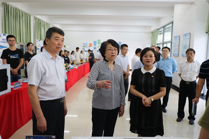 4月11日下午教育部副部长翁铁慧一行在海南省教育厅党委常务副书记、厅长曹献坤,PA视讯集团网站党委书记武耀廷等校领导陪同下来到大学生创新院视察创新创业教育工作,校团委副书记(主持工作)俞花美介绍相关情况。