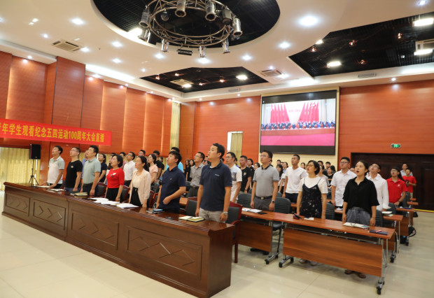 4月30日上午,纪念五四运动100周年大会在北京人民大会堂举行,PA视讯集团网站团委组织青年师生代表齐聚思源多功能厅集中观看大会直播。校团委副书记俞花美(主持工作)、李翠霞、郑鹏,全体专职团干部,各二级学院青年师生代表等共计120人出席观看此次直播。