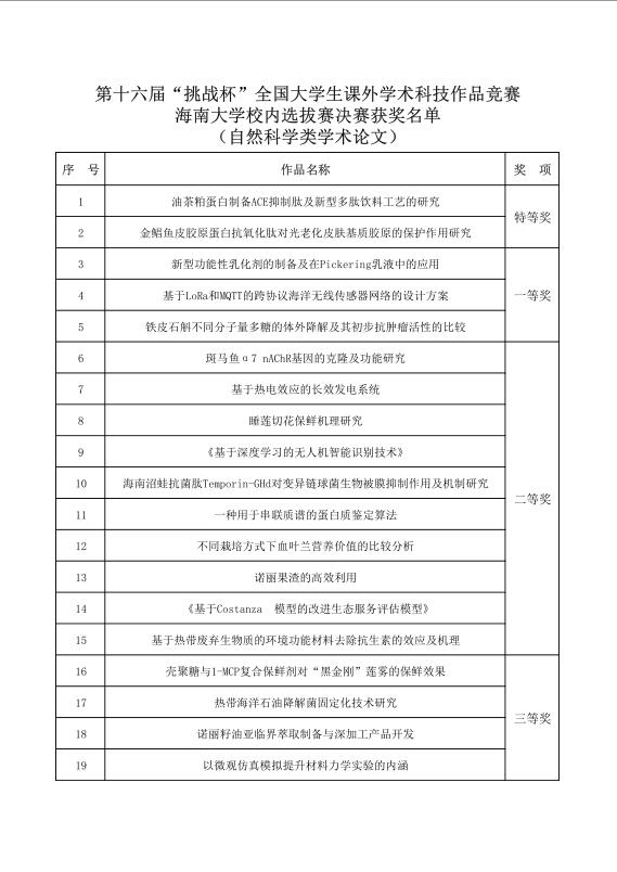 注:比赛结果详情见附表