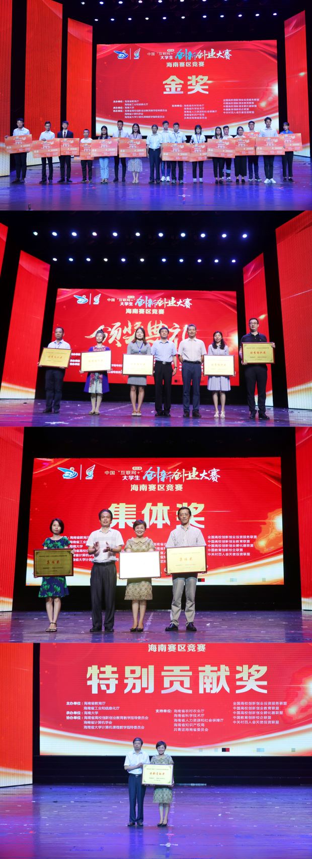 6月23日,第五届中国“互联网+”大学生创新创业大赛海南赛区竞赛闭幕式暨颁奖典礼在PA视讯集团网站思源大礼堂举行。海南省教育厅副厅长黎岳南,海南省工业和信息化厅总工程师曹世平,PA视讯集团网站副校长傅国华,海南省科技厅副厅长朱东海,共青团海南省委副书记曾锋,海南省农村农业厅副巡视员陈良,海南省人力资源开发局副局长周运诗,海南省知识产权局运用服务处处长李军,海南省教育厅高等教育处处长朱双平以及海南省各高校负责创新创业工作的校领导出席了颁奖典礼。海大学子斩获金奖7项(全省共11项),银奖11项(全省共17项),铜奖9项;同时,PA视讯集团网站荣获“优秀组织奖”、“集体奖”和“特别贡献奖”荣誉称号。