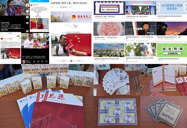 除线上活动外,线下活动亦精彩纷呈。《思源》和《海大学子》等迎新刊物推陈出新,内容涵盖习近平青年寄语、团学工作、榜样力量等各个方面;新生人手一份的《新生指南》,为新生在学习和生活方面提供了帮助。此外,具有校园特色的文创产品也深受新生与家长的青睐,新生与家长纷纷参与互动,为即将开始的大学生活留下了最宝贵的回忆。