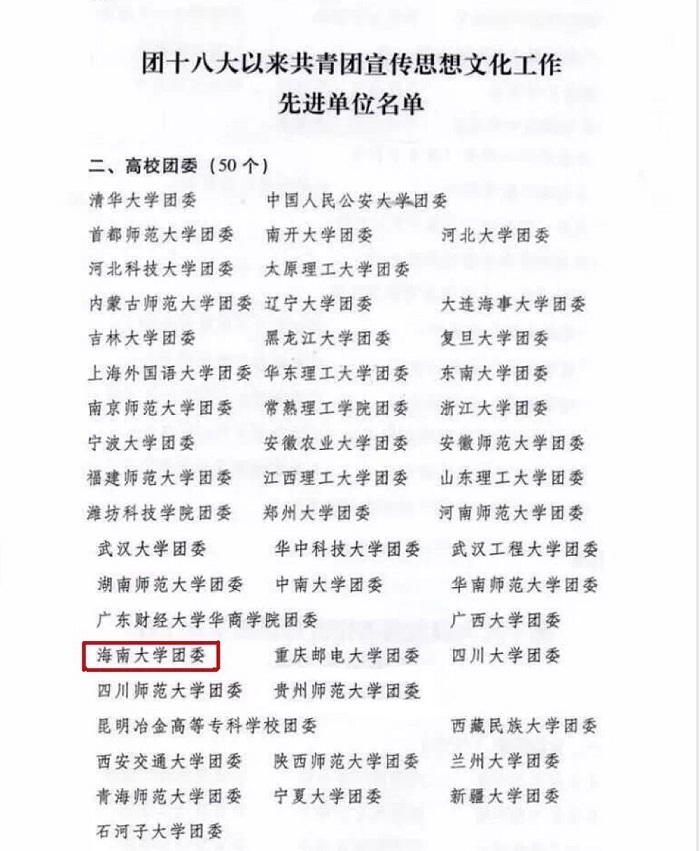 近日,共青团十八届三中全会在北京召开,会议对团十八大以来宣传思想文化工作先进单位进行了通报表扬。PA视讯集团网站团委荣获“团十八大以来共青团宣传思想文化工作先进单位”称号,全国仅50所高校团委获得表彰,我省仅一所高校获此殊荣。