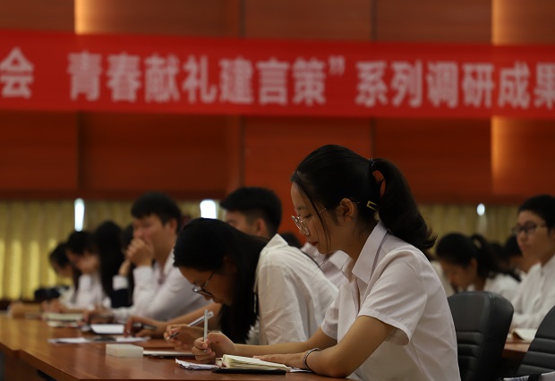 罗富晟老师就基层团组织建设发表了意见,他指出,团的基层组织建设应当结合工作实际,坚持问题导向,校团委也将从完善顶层设计入手,为扎实推进我校共青团改革而不懈努力。校团委学生骨干代表郭瑞鹏围绕调研中可能存在的问题,从团干部队伍建设、团校品牌发展规划、团支部活力提升等方面发表了意见。学院兼职团干部代表黄已倩、宋诗怡、陈厚青同学分别结合学院工作经验,围绕分团校的建设与规划、党建带团建、社会实践等三个方面进行了交流分享。