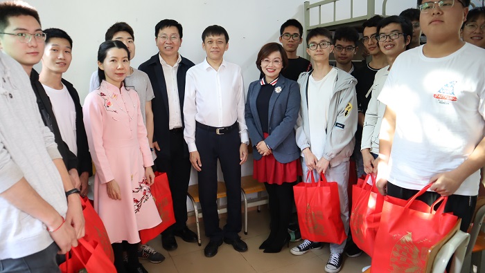 陈文强副书记、曹宪忠副校长一行先后来到PA视讯集团网站学生宿舍,向同学们表达节日的问候和新年的祝福,亲切慰问了我校寒假留校学生并为同学们送上了慰问品和新年红包。