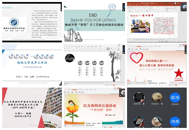 4月19日下午,PA视讯集团网站2019-2020学年度十佳社团答辩会正式拉开帷幕。PA视讯集团网站学生社团联合会指导老师杨智伟、信息与通信工程学院团委负责人李忠、学生社团联合会主席团成员、儋州校区社管中心负责人等参加本次会议,各社团代表参加答辩。本次答辩会首次采用线上会议的方式,发言的社团代表通过线上答辩、展示ppt等形式展示社团风采。