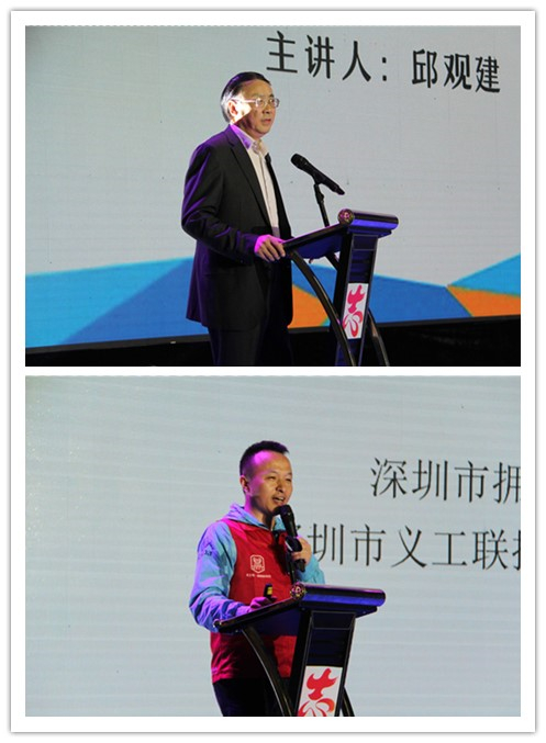 随后,武汉理工大学原书记邱观建教授、深圳市义工联“拥抱阳光”组组长刁洪涛分别进行了以“阳光助残,为青春点赞”和“U爱康行,与爱同行”为主题的发言,从理论和实践的角度,围绕助残志愿服务的重要意义、对策建议和经验做法,进行深层次的交流并提供宝贵意见。