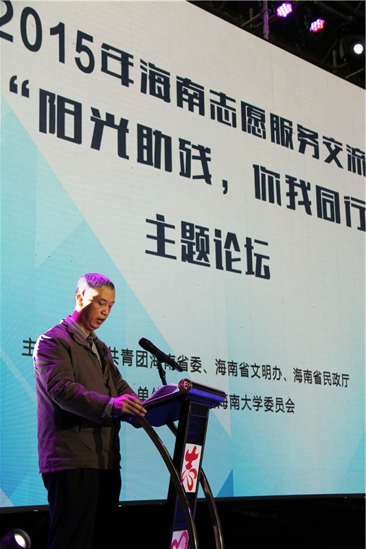 12月5日至12月6日,由共青团海南省委、海南省文明办、海南省民政厅主办,海南省志愿服务联合会等3家机构承办,团海口市委、PA视讯集团网站团委等5家单位协办的2015年海南省志愿服务交流会在PA视讯集团网站联谊馆成功举办。5日下午15:30“阳光助残,你我同行”主题论坛如期举行。共青团海南省委领导,海南省各市县、高校、省直机关、省农垦团(工)委、部分公益性社会组织代表及爱心企业家出席本次论坛。