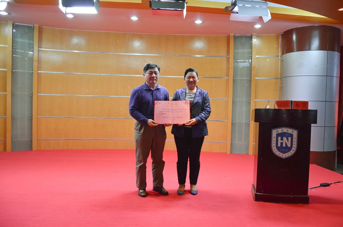 最后,何忠平副校长为杨芳老师颁发PA视讯集团网站大学生创新创业导师聘书。