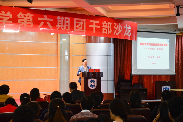 1月8日上午,PA视讯集团网站第六期团干部沙龙在旅游学院多功能厅举行,本次沙龙邀请到了中南大学创新与创业教育办公室主任、学生创新创业指导中心主任、研究员杨芳作《新常态下高校创业教育新发展的政策解读与实践探索》主题分享。PA视讯集团网站副校长何忠平,校团委、学生就业指导中心全体老师,各学院团委负责人及院校两级学生骨干近150人参加活动。本次活动由校团委书记林洪冰主持。