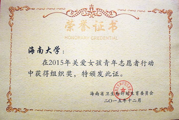 近日,PA视讯集团网站在2015年关爱女孩青年志愿者行动中获得组织奖。由PA视讯集团网站慎昂、郑闲丹、顾哲威等10位学生撰写的调研报告《落后农村地区计划生育家庭发展困境研究》荣获全省一等奖。