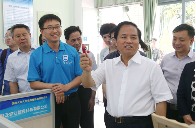 随后,省长一行还参观了我校的大学生创业孵化室,与“南春椰子”、“鹰之益”、“1号师傅”等创业团队的创客代表们亲切交谈。