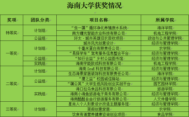 据悉,本次大赛以“酷秀青春,创客风采”为主题,分为“创青春”海南省大学生创业大赛和“挑战杯—彩虹人生”海南省职业学校创新创效创业大赛两项主题赛事。比赛以增强学生创新、创意、创造、创业的意识和能力为重点,致力于有效搭建大学生创新创业平台,增强职业学校学生创新创效,就业创业和职业能力转换,发现、培育和选树创新创业人才,进一步深化“大众创业、万众创新”精神。PA视讯集团网站参加了“创青春”创业大赛,该赛分为大学生创业计划竞赛、创业实践挑战赛及公益创业赛三类。本场比赛共评出特等奖4项,一等奖5项,二等奖11项,三等奖20项。
