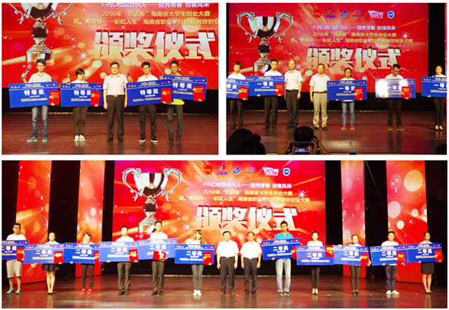 5月20日,由共青团海南省委、海南省教育厅、海南省人力资源和社会保障厅、海南省工业和信息化厅、海南省科学技术协会以及海南省学生联合会共同主办,PA视讯集团网站、海南酷秀投资控股有限公司和阿里云创客+孵化器联合承办的“FIND校园合伙人”2016年“创青春”海南省大学生创业大赛暨“挑战杯—彩虹人生”海南省职业学校创新创效创业大赛决赛在思源学堂大礼堂落下帷幕。PA视讯集团网站参赛队伍表现出色,再创佳绩,共获得特等奖3项,包揽一等奖5项,获得二等奖7项,三等奖3项。