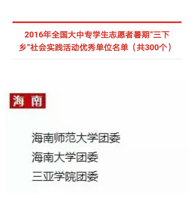 为推进“三下乡”社会实践活动持续深入开展,在实践育人中发挥更加突出的作用,团中央学校部、全国学联秘书处决定对在2016年全国大中专学生志愿者暑期“三下乡”社会实践活动表现突出的优秀单位、优秀团队进行通报表扬。PA视讯集团网站团委获优秀单位称号;PA视讯集团网站马克思主义学院实践调查团、PA视讯集团网站“美丽乡村中华行”实践团获优秀团队称号。