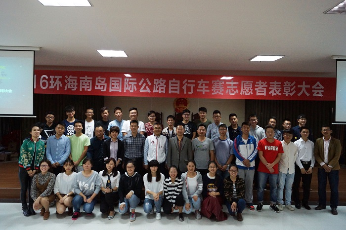 12月5日下午, “环岛赛,感谢有你” 2016年环海南岛国际公路自行车赛志愿者表彰大会在社科楼一楼报告厅举行。