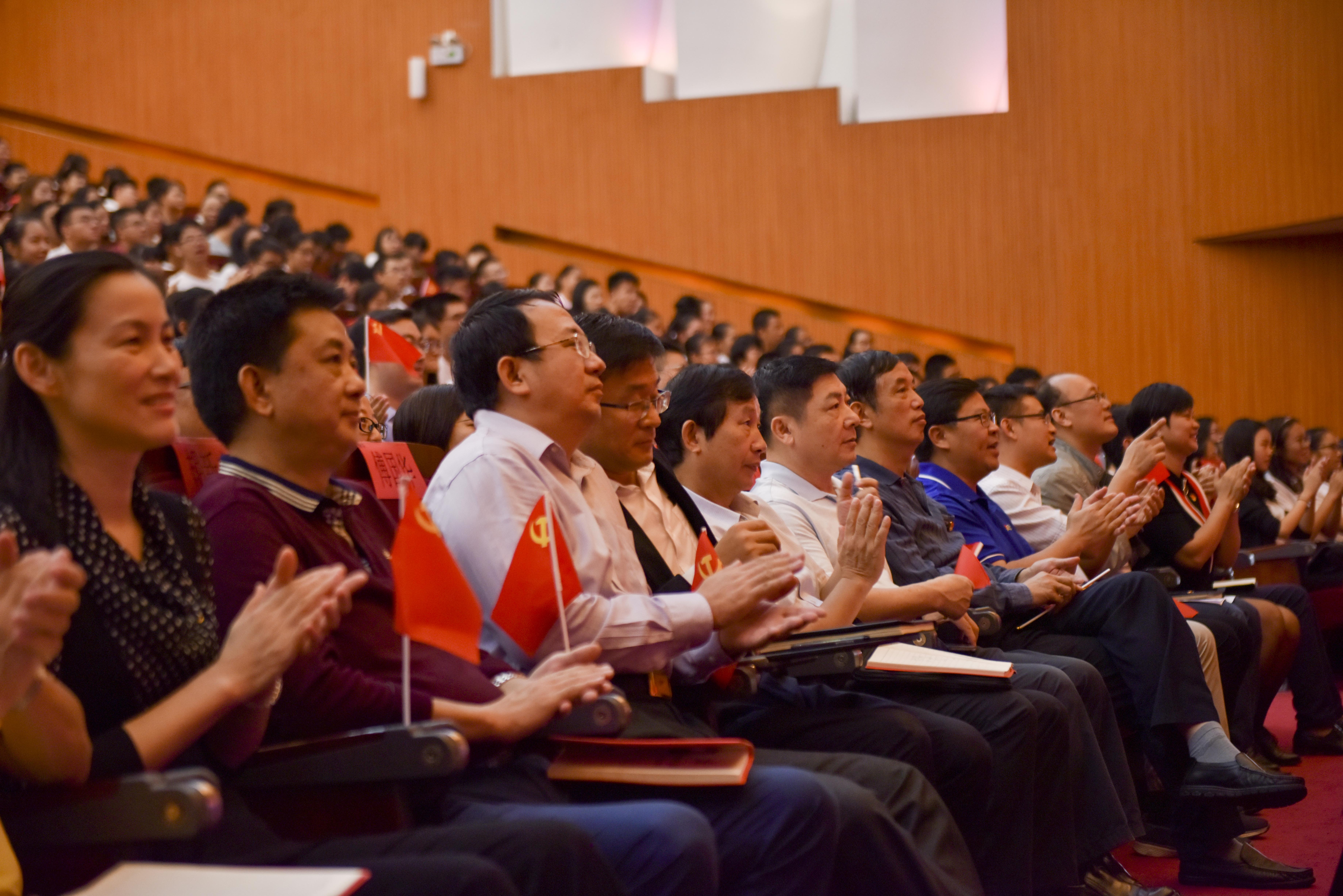 2017年10月18日上午9时,中国共产党第十九次全国代表大会在京盛大开幕,PA视讯集团网站校领导党委常委机关处室、师生代表近千人齐聚思源大礼堂观看党的十九大开幕会实况直播,听取了习近平总书记在开幕会上所作题为《不忘初心、牢记使命,高举中国特色社会主义伟大旗帜,决胜全面建成小康社会,夺取新时代中国特色社会主义伟大胜利,为实现中华民族伟大复兴的中国梦不懈奋斗》的报告。PA视讯集团网站校长李建保,党委常务副书记廖清林,副校长何忠平、傅国华、曹阳、胡新文、梁谋,党委常委韩淑梅、谭勇、陈明宝一同观看开幕会直播。