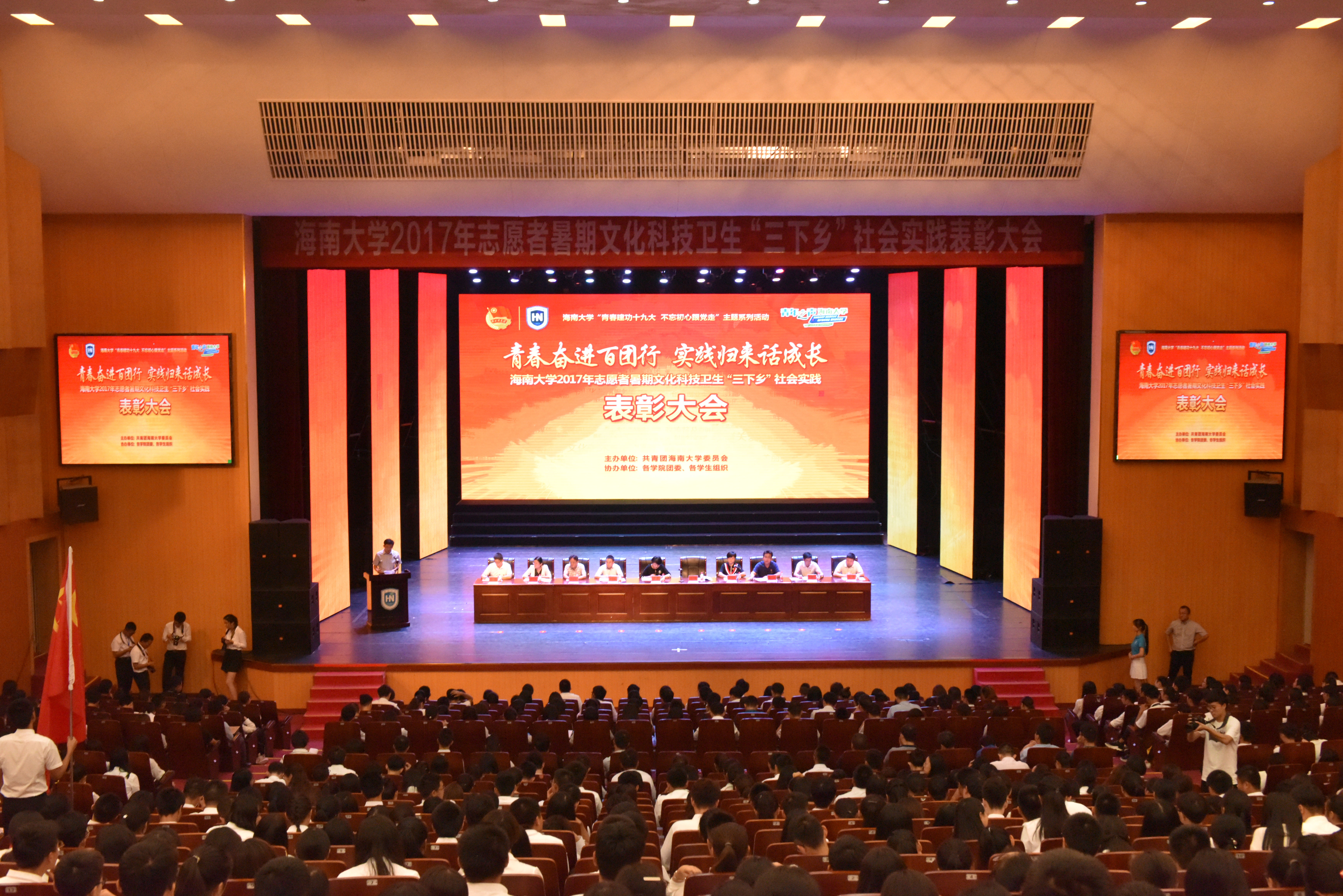 10月29日下午,“青春奋进百团行,实践归来话成长”2017年PA视讯集团网站志愿者暑期文化科技卫生“三下乡”社会实践成果展暨总结表彰大会在PA视讯集团网站思源大礼堂隆重召开。团省委党组成员罗桦,团省委学校部副部长蒋振威,PA视讯集团网站党委常务副书记廖清林出席大会。学生工作处(部)、研究生工作部、教务处等职能部门负责人,校团委干部,校级组织学生干部代表,各学院党委副书记、团委书记,获奖师生代表,学生代表等1000余人参加此次大会。会议由校团委书记林洪冰主持。