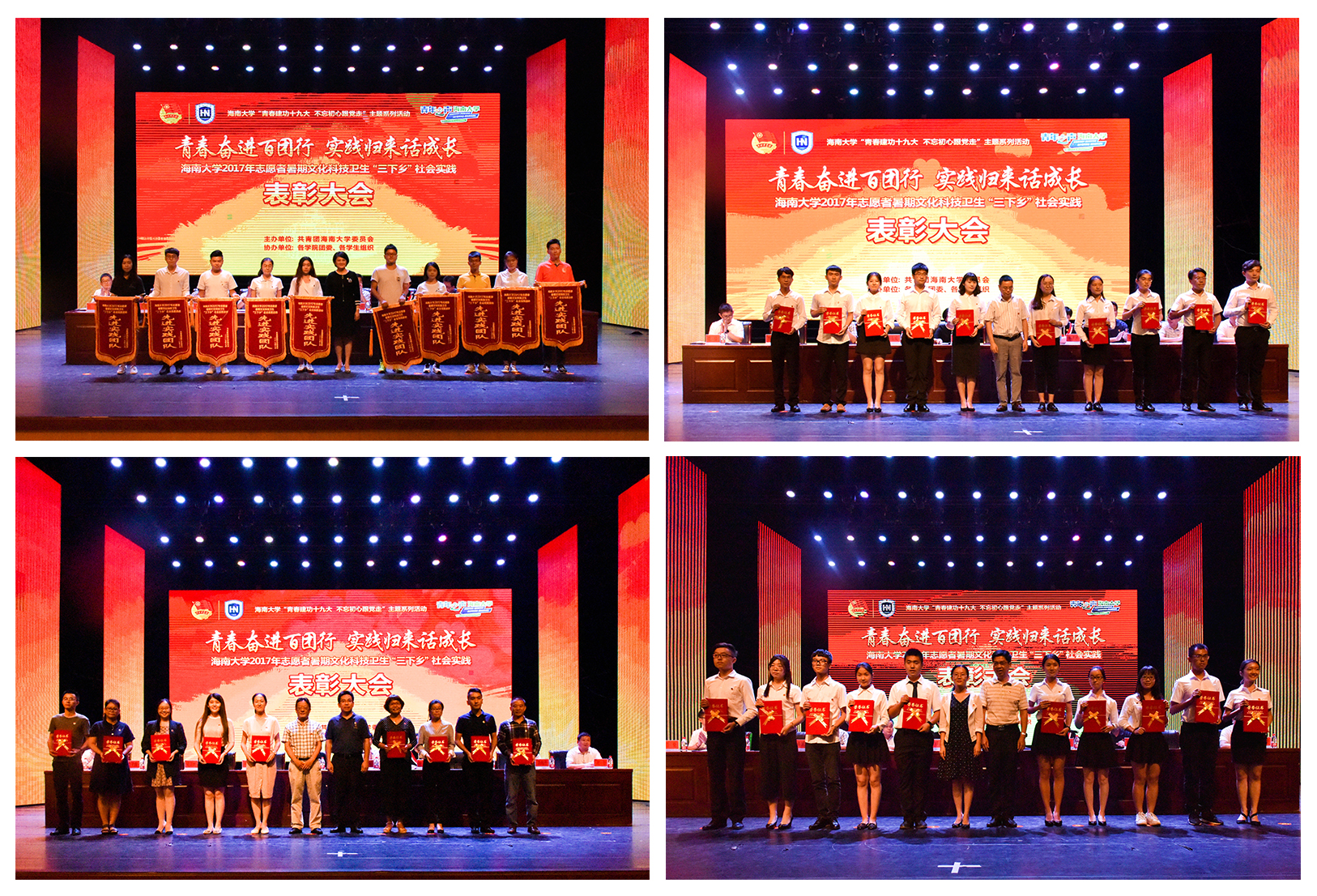 会上,校团委副书记李翠霞宣读了表彰决定,授予热带农林学院等6个单位“优秀组织奖”荣誉称号;授予“走进乡土乡村,助力精准扶贫”琼中实践团队等75支团队“先进实践团队”荣誉称号;授予王健等81位教师“优秀指导教师”荣誉称号;授予宋茜等644名同学“学生积极分子”荣誉称号;授予《海南省美丽乡村建设情况调查报告》等57篇论文“优秀社会实践论文(调查报告)”荣誉称号。